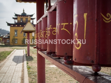 Buddhist temple in Ulan-Ude, Russia. Prayer drums in datsan.