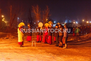 Улан-Удэ, 3 февраля 2019. Во время проведения буддийского обряда "Дугжууба" в торце улицы Каландаришвили.