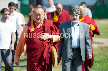 Улан-Удэ, 1 августа 2012. Протоиерей Всеволод Чаплин и Пандидо Хамбо-лама Дамба Аюшеев, глава буддийской традиционной Сангхи России, в Иволгинском дацане.