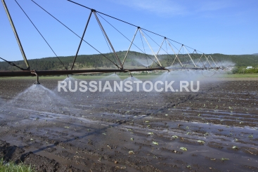 Двухконсольный дождевальный агрегат для орошения участков, занятых овощными, бахчевыми и другими сельскохозяйственными культурами.