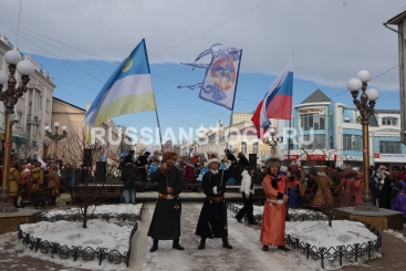 Улан-Удэ, 20 февраля 2026. Дэгэлфлешмоб - участники акции в бурятских костюмах прошли по улицам города, приуроченный к Году единства народов России
